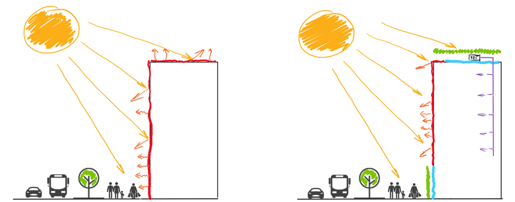 Ochrana pred prehrievaním miest – Zelené strechy pomáhajú znižovať efekt mestského tepelného ostrova a vytvárajú príjemnejšie mikroklimatické podmienky.